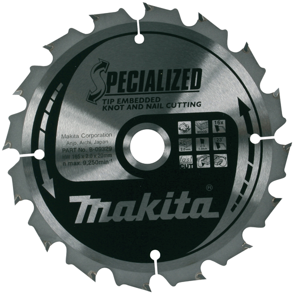 Пильные диски Makita В-31332 210x30x1,9х18T не разрушаются при резке древесины с сучками и даже древесины с гвоздями или шурупами.